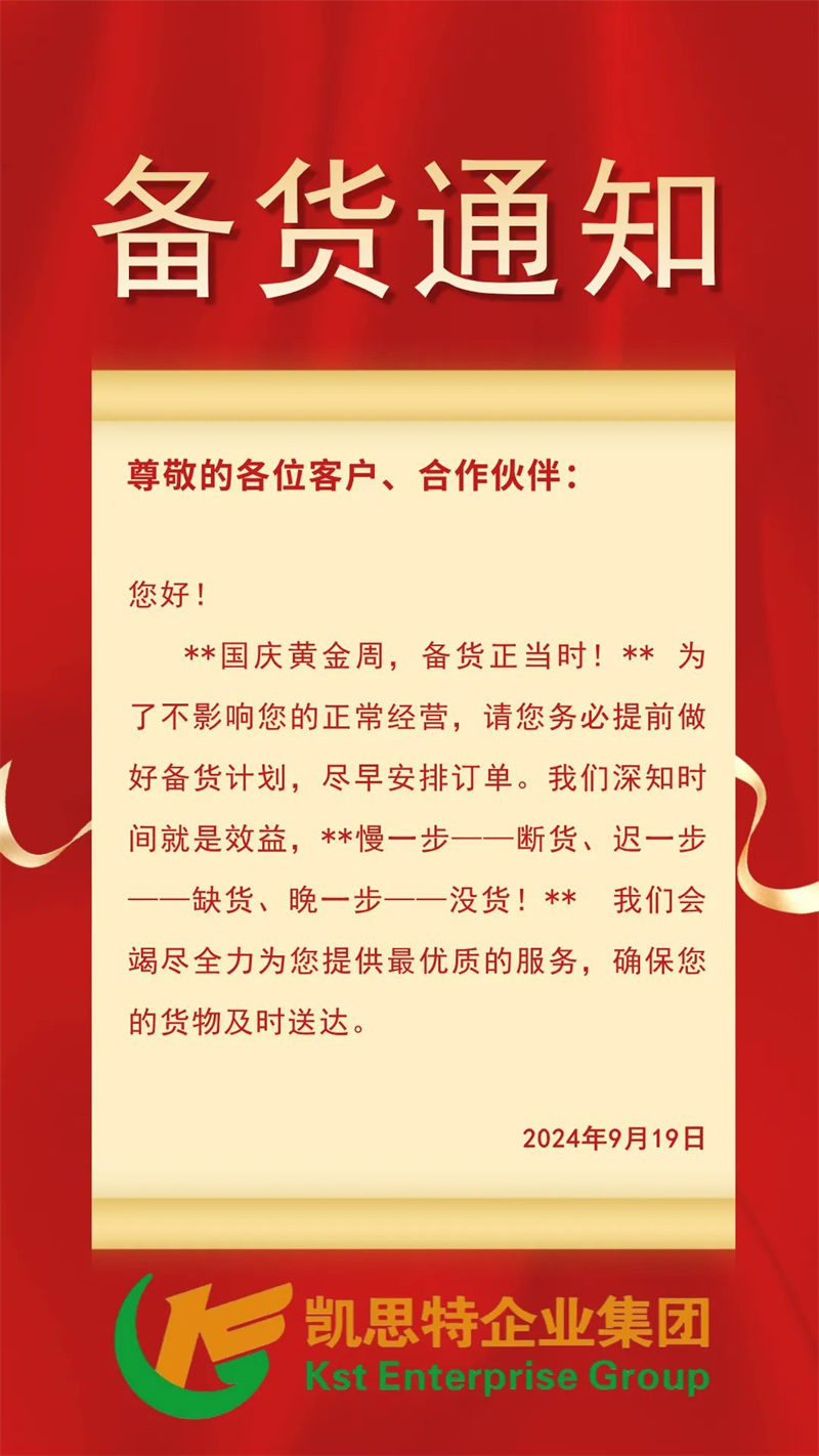 國慶備貨,刻不容緩!陜西凱思特企業集團2024年國慶放假備貨通知