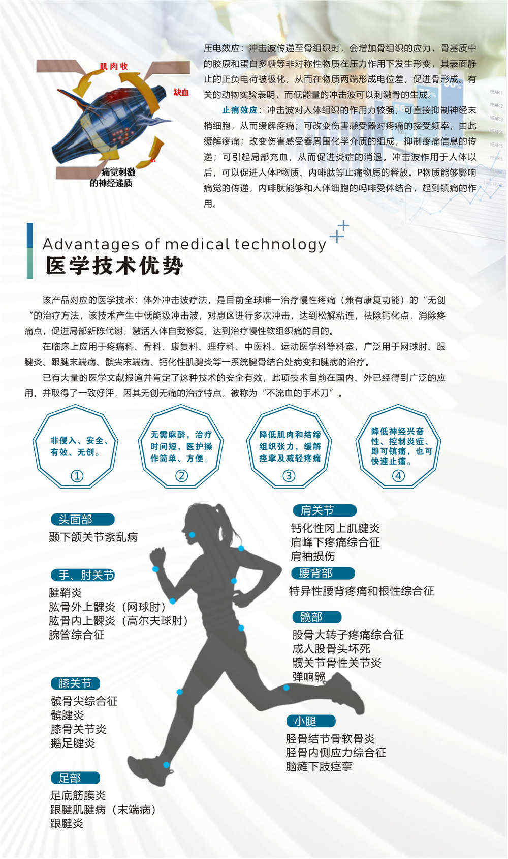 在臨床上應(yīng)用于疼痛科、骨科、康復(fù)科、理療科、中醫(yī)科、運(yùn)動(dòng)醫(yī)學(xué)科等科室,廣泛用于網(wǎng)球肘、跟腱炎、跟腱末端病、髕尖末端病、鈣化性肌腱炎等一系統(tǒng)腱骨結(jié)合處病變和腱病的治療。