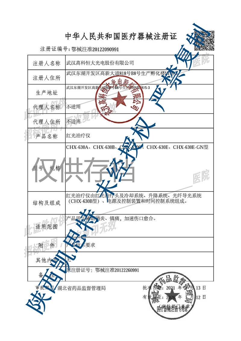 醫療器械注冊證編號:鄂械注準20122090991